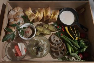 野菜をディップして食べられます。バーニャカウダソースはグリルで温めても美味しいです。