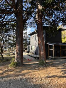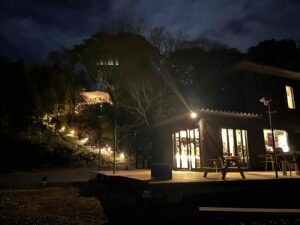 通りには、クスクスグランピング真鶴の看板が分かりやすく出ているので、暗くなってからの訪問でしたが、mamioは迷わず到着できました!