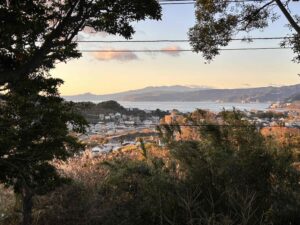 明るい時間帯だと、丘の上から相模湾を一望でき、その景色を楽しみながらお散歩できます。