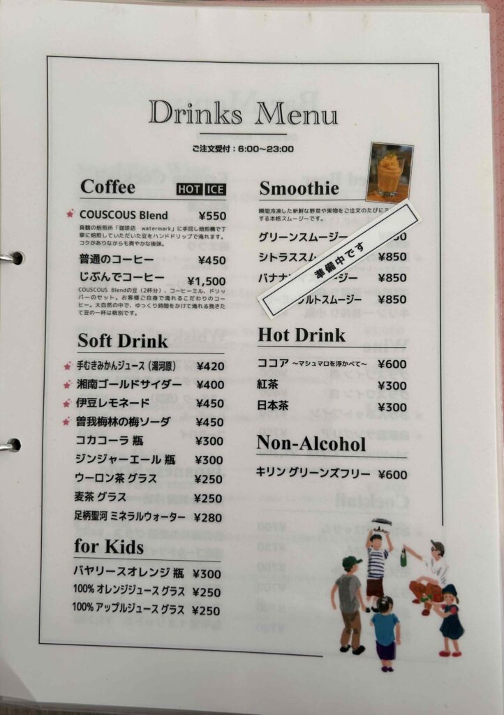 自然豊かな環境ですが、Wi-Fi完備で、飲み物などの注文はスマートフォンでQRコードを読み取ってすることができます。