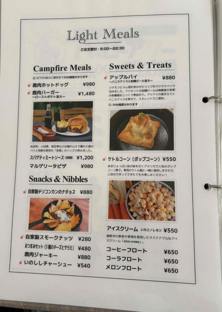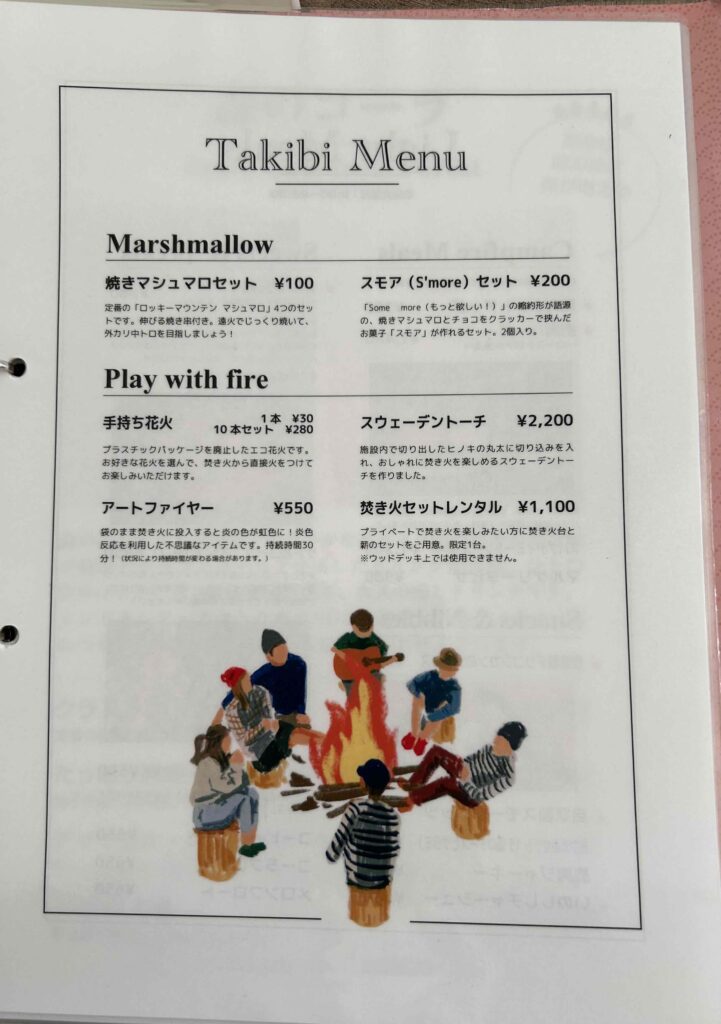 敷地内にある焚火を楽しみながら堪能できるメニューもあります。